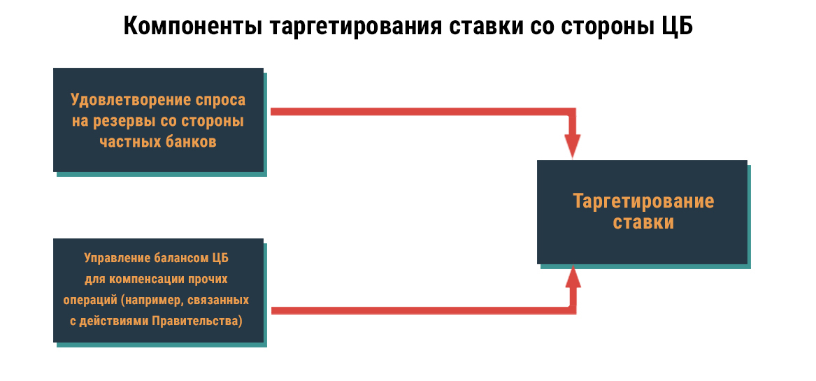 и не может, собственно, делать ничего другого — если количество резервов в обращении меньше, чем того желают банки, баланс Центрального банка