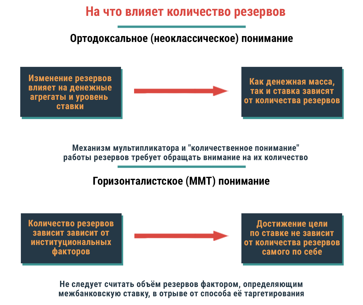 объем непогашенных РЕПО на протяжении десятилетий превышал объем находящихся в обращении резервов. Поскольку при нынешнем подходе операции Центрального банка соответствуют описанию системы овердрафтов по Лавуа, логически просто не может быть, чтобы Центральный банк создавал «избыточную ликвидность» — кредиты или овердрафты создаются по инициативе заемщика, а не кредитора.